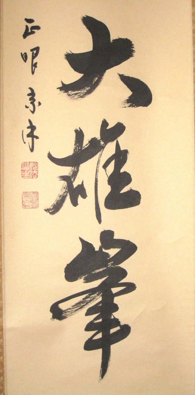 こちらの茶掛 独坐大雄峯は、現妙心寺派 管長 山川宗玄 老師の真筆一行ものでございます。