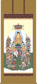 こちらの掛け軸 十六善神図は大幅複製仏画・新品でございます。