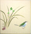 ■画 題■ 「色紙 日本画 春蘭にウグイス 梅木信作(真筆・新品)」