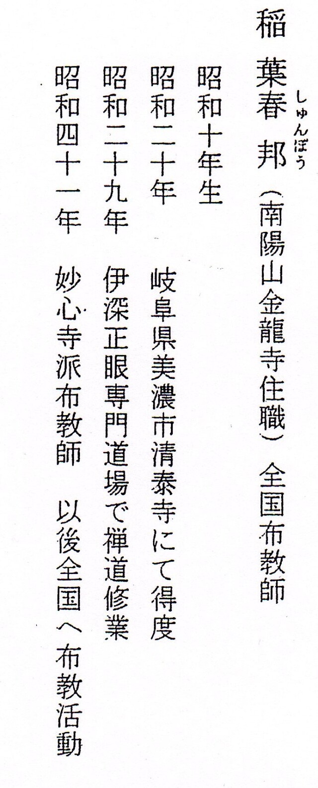 昭和41年 臨済宗妙心寺派布教師