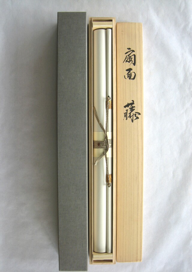 • 掛け軸 扇面 藤◆白木加葉 (真作・新品) 尺八横