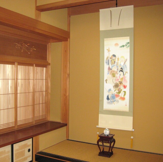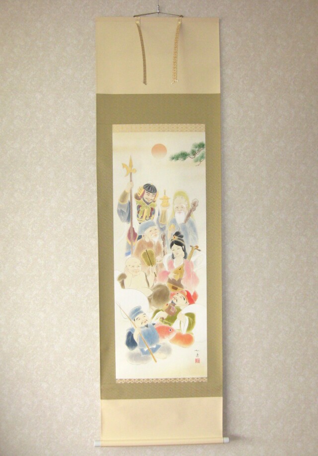 掛け軸 七福神祝宴◆白木加葉