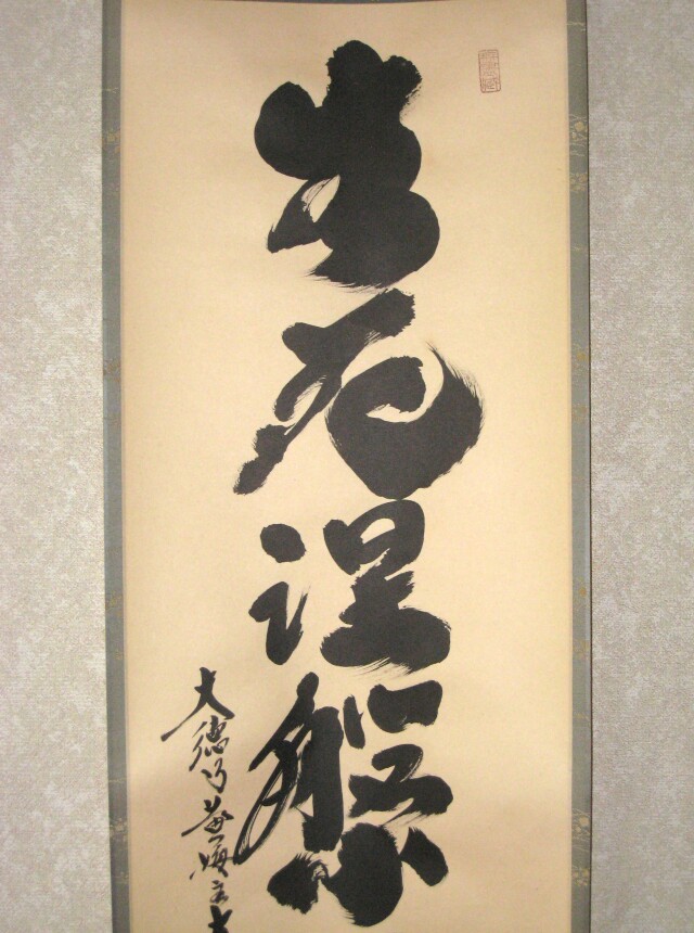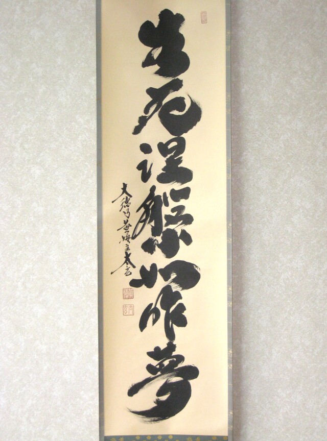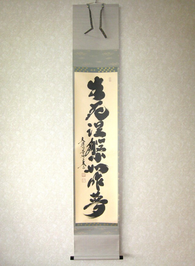 茶掛 生死涅槃如昨夢◆大徳寺 塔頭黄梅院 住職 小林太玄 (真筆・中古) 共箱・タトウ箱付